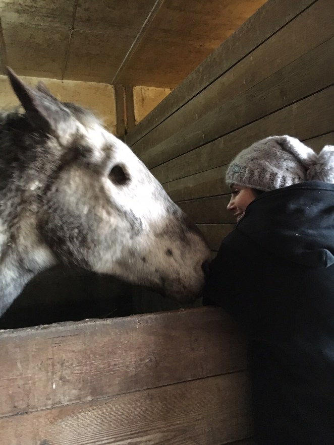 We got to visit with Bruce the duck who will peck at your feet over and over until you just pick him up. He’s the most loving duck I’ve ever met. Our final chores of the day included distracting the 11 piglets with apples so their feed could be delivered and topping off water for the horses for the night. I spent some time with Buddy, the blind horse with a heart of gold and then visited with a horse named Arabell that we currently sponsor. All in all our day was filled with love, generosity, laughs, and purity.